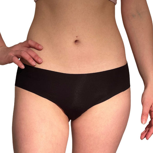 Our hipster style is for you! They are more cheeky and have less back coverage than our bikini style. They feel luxuriously soft and are seamless to give a no-show look.